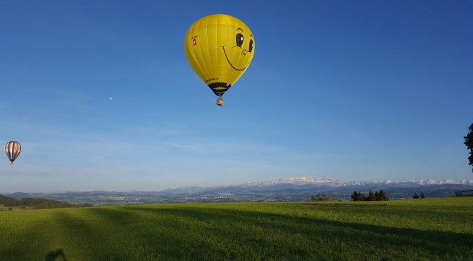 Vid en resa i Schweiz tog jag denna glada bild. Skåda färgkontrasterna och Alperna i bakgrunden.